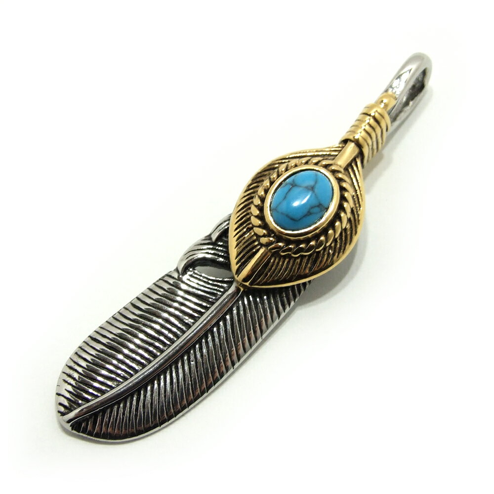 ステンレスペンダント ネックレス メンズ レディース 316Lサージカルステンレス フェザー 羽根 ターコイズ バイカラー チェーン付き シルバー ゴールド 【 ギフト プレゼント ラッピング 誕生日 】 【あす楽】 snc014 詳しく見る