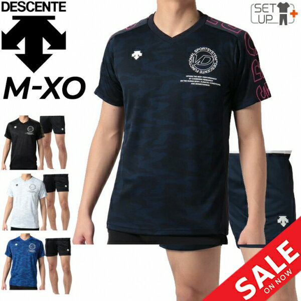 半袖Tシャツ ショートパンツ 上下 メンズ /デサント DESCENTE バレーボール スポーツウェア セットアップ 吸汗速乾 男性 上下組 2点セット 男子 トレーニング 練習着/DVUTJA54-DVUTJD81