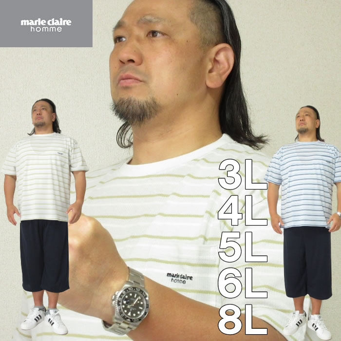 大きいサイズ メンズ marie claire homme-梨地ボーダー半袖Tシャツ+ハーフパンツ(メーカー取寄)マリクレールオム 3L 4L 5L 6L 8L