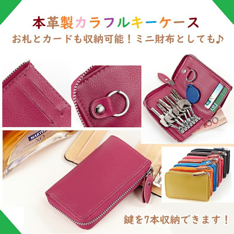 本革 キーケース 6連 分離型 キーリング お札入れ 付き カラフル 全7色 CL-922 鍵ケース 小さい財布 l字財布 l字ファスナー ミニ財布 薄型 カード収納 レザー 牛革 コンパクト ミニ メンズ レディース シンプル おしゃれ ナチュラル 可愛い 贈り物 ポイント消化