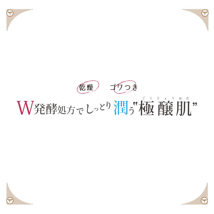W発酵処方のとろ〜り濃厚エッセンスが角質層にたっぷり潤いを与え、しっとりとした潤い“極醸肌(ごくじょうはだ)”へ。