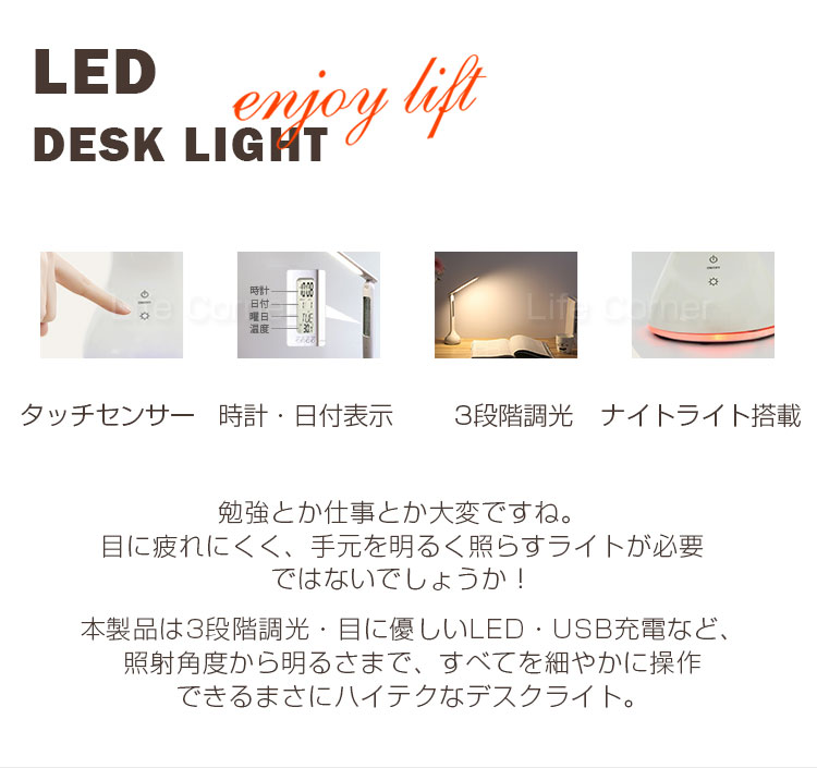 4.カレンダー・時間・温度が見られるディスプレイ付き多機能デスクライト、あなたの日常生活をしっかりとサポート致します。
