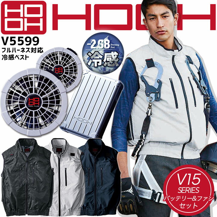快適ウェア フルハーネス対応冷感ベスト Premiumバッテリーファンセット V5599 V1501 V1502 S〜4L 肩パット 消臭テープ 村上被服 電動ファン用ウェア 作業着 作業服 ユニフォーム